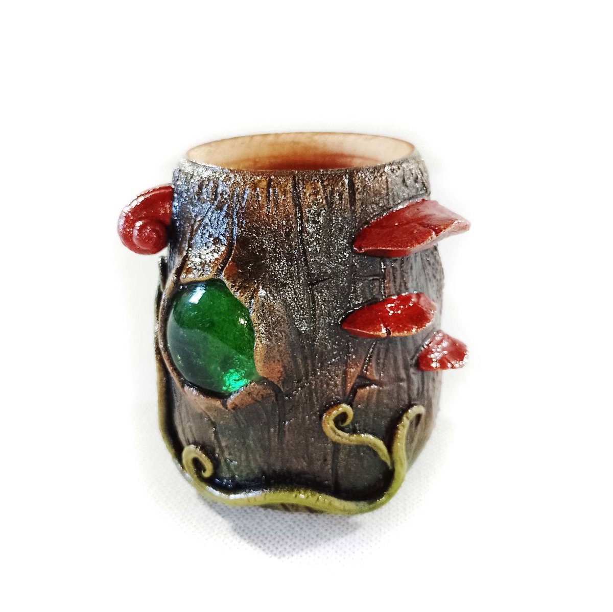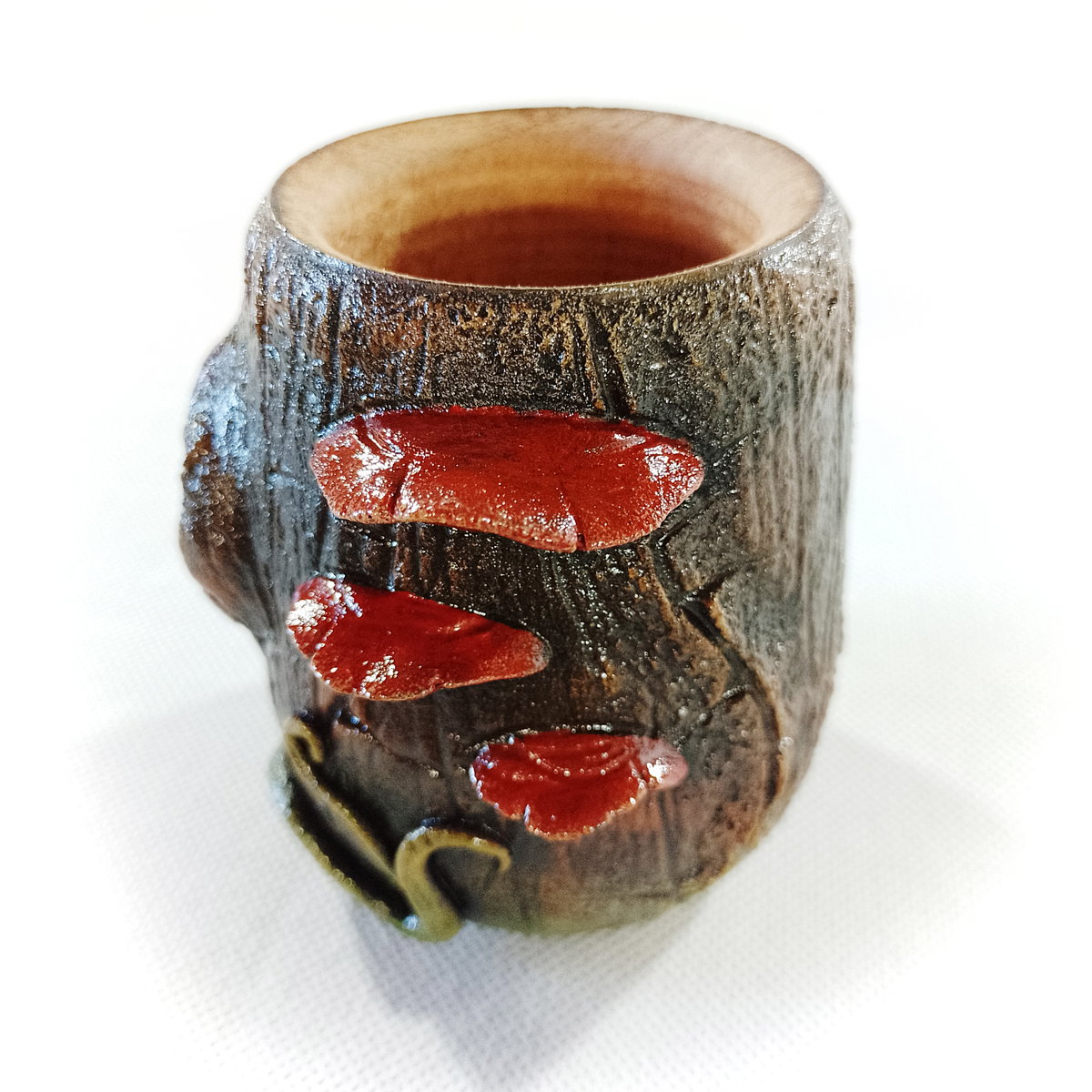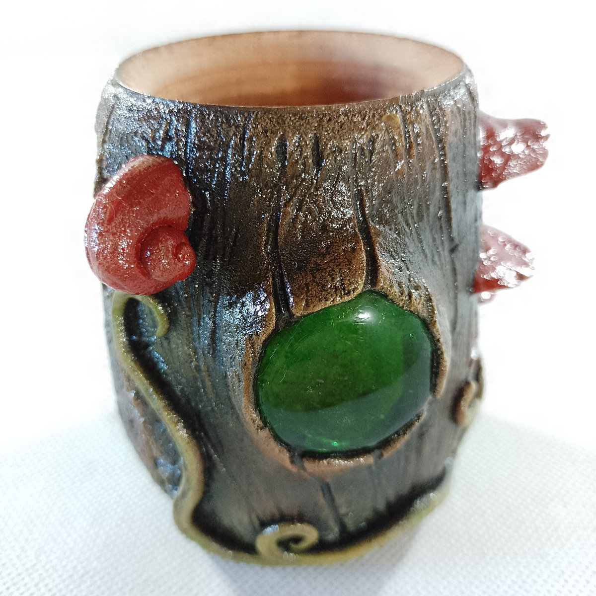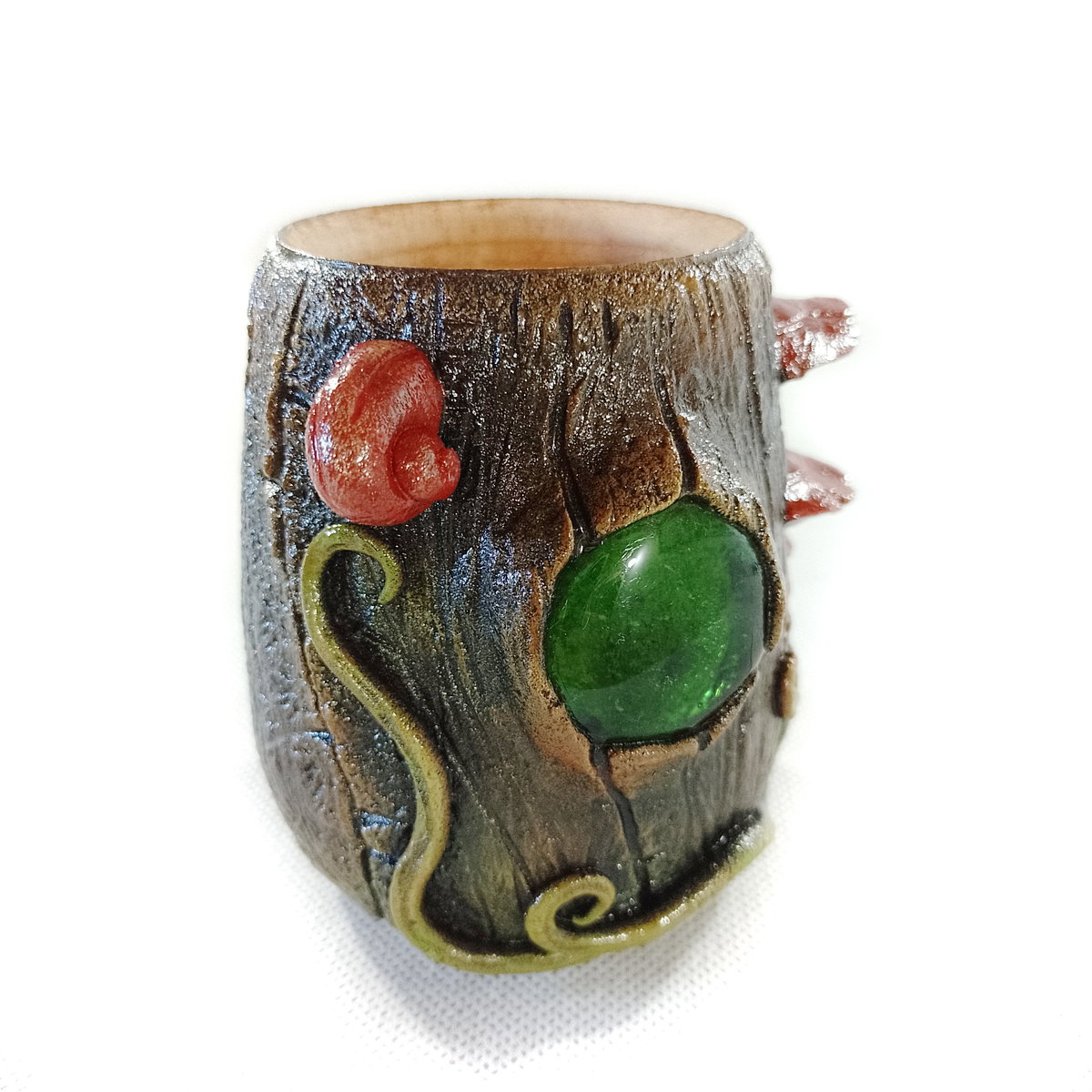 -Interior de algarrobo y exterior de porcelana fría, modelado y pintado a mano.