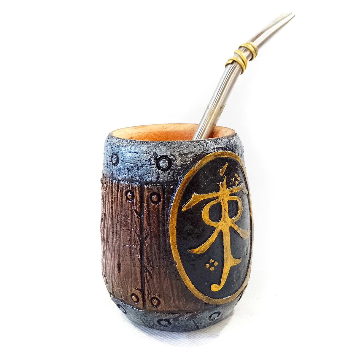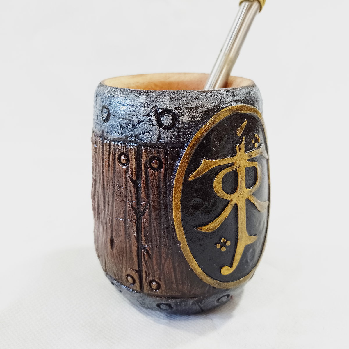 Mate Artesanal Algarrobo Tipo Barril Tolkien.