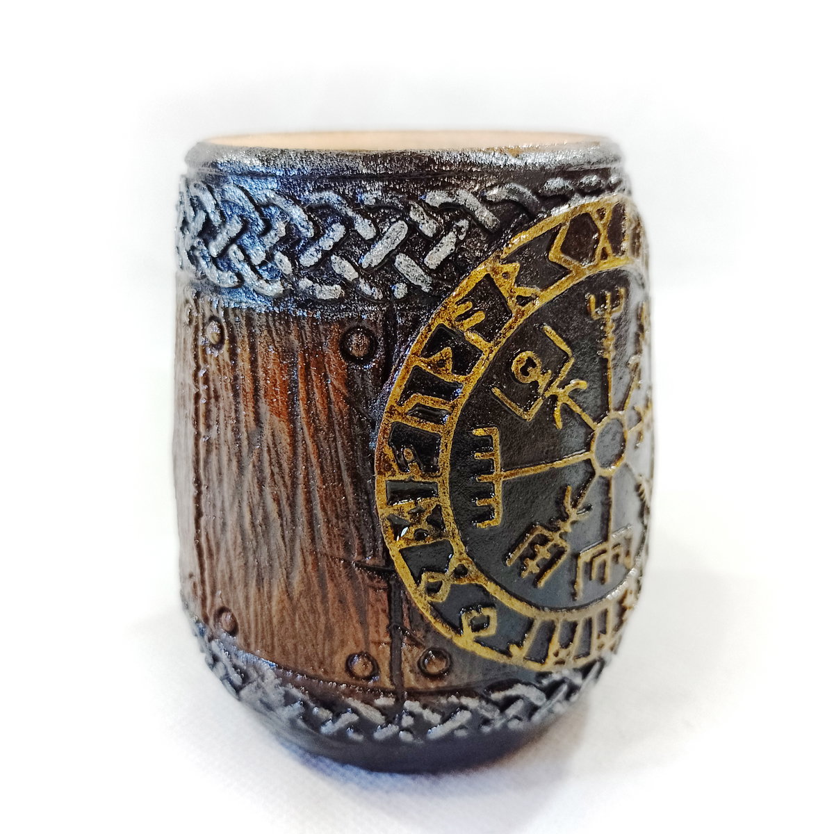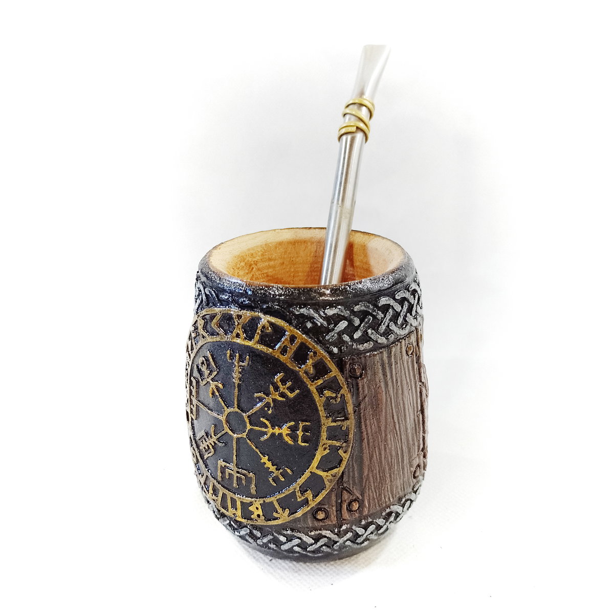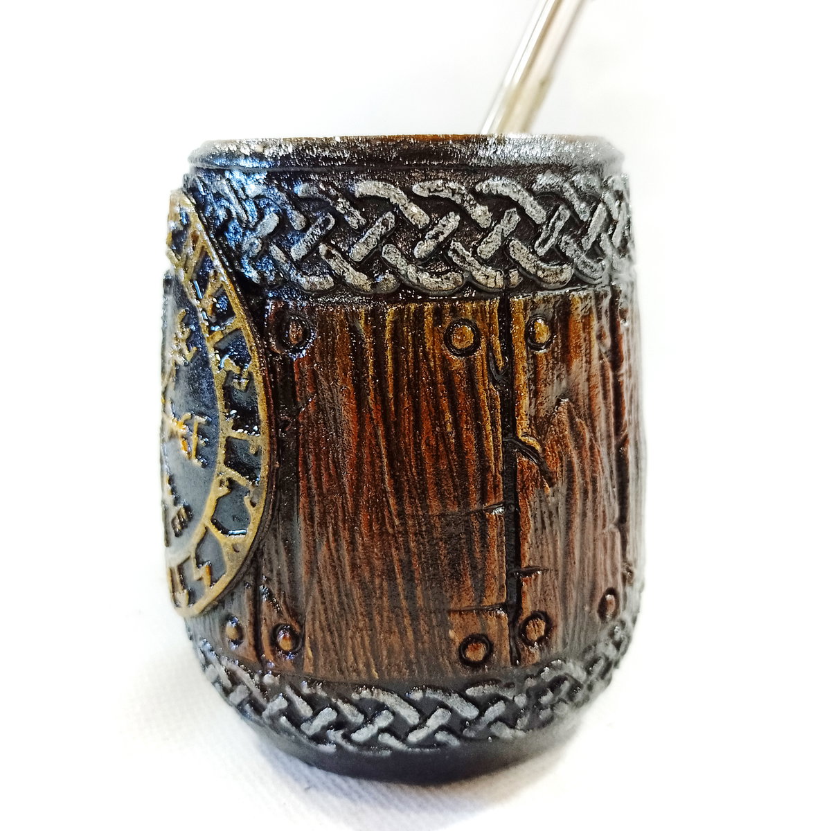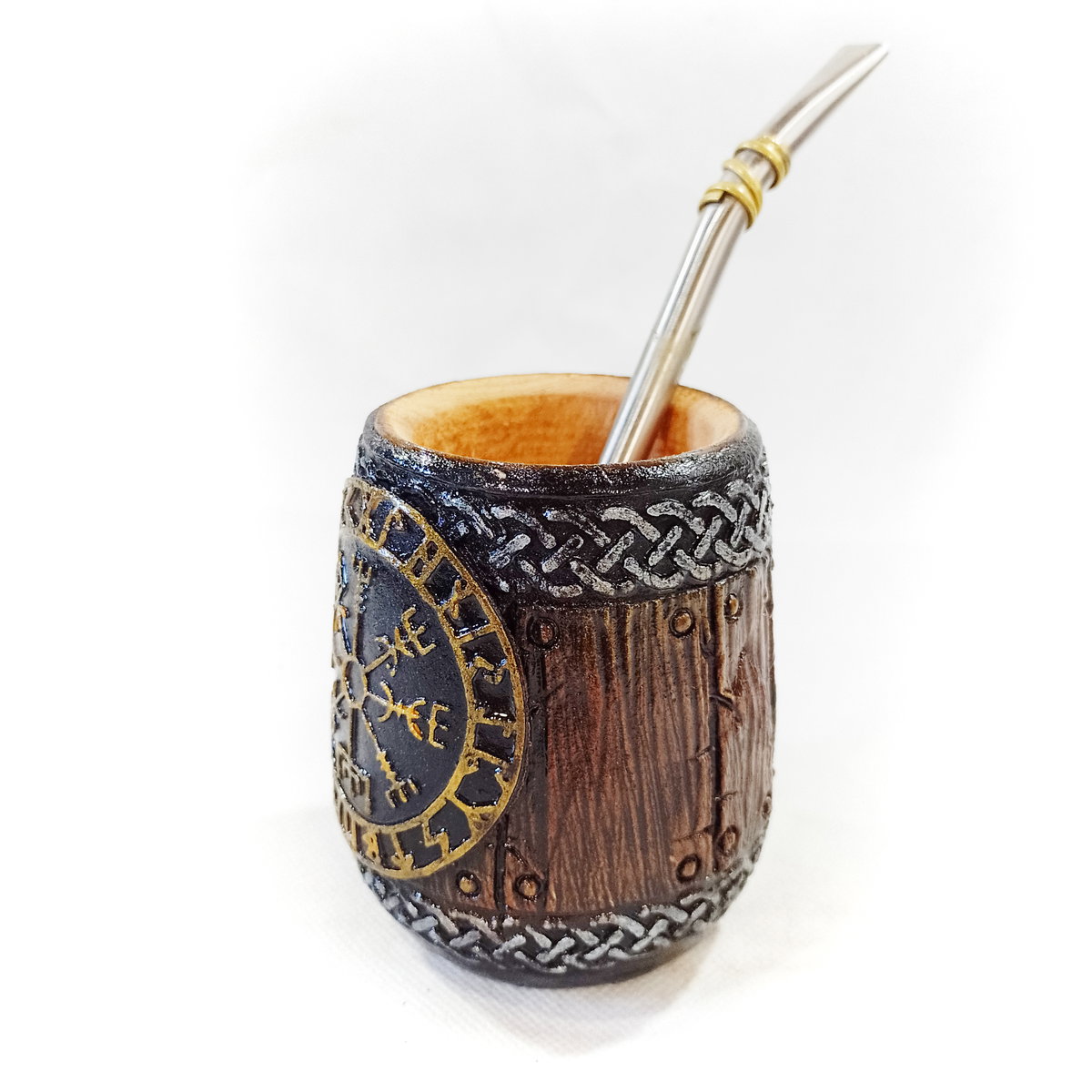 Mate Artesanal Algarrobo Tipo Barril Runas Vikingas.