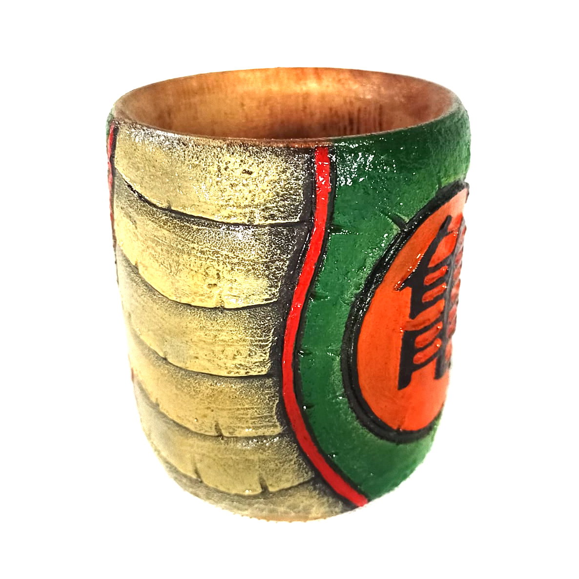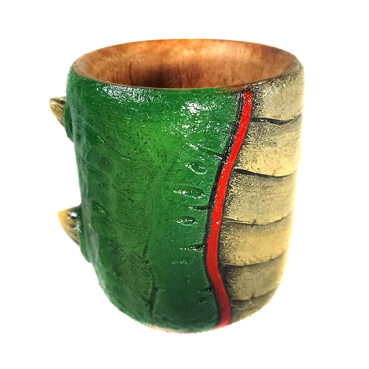 -Interior de algarrobo y exterior de porcelana fría, modelado y pintado a mano.
