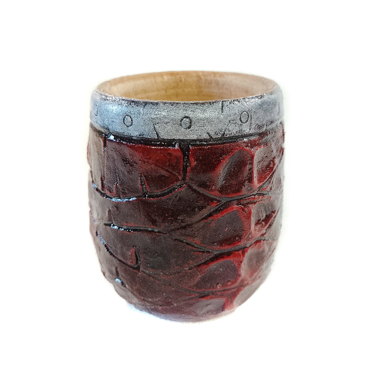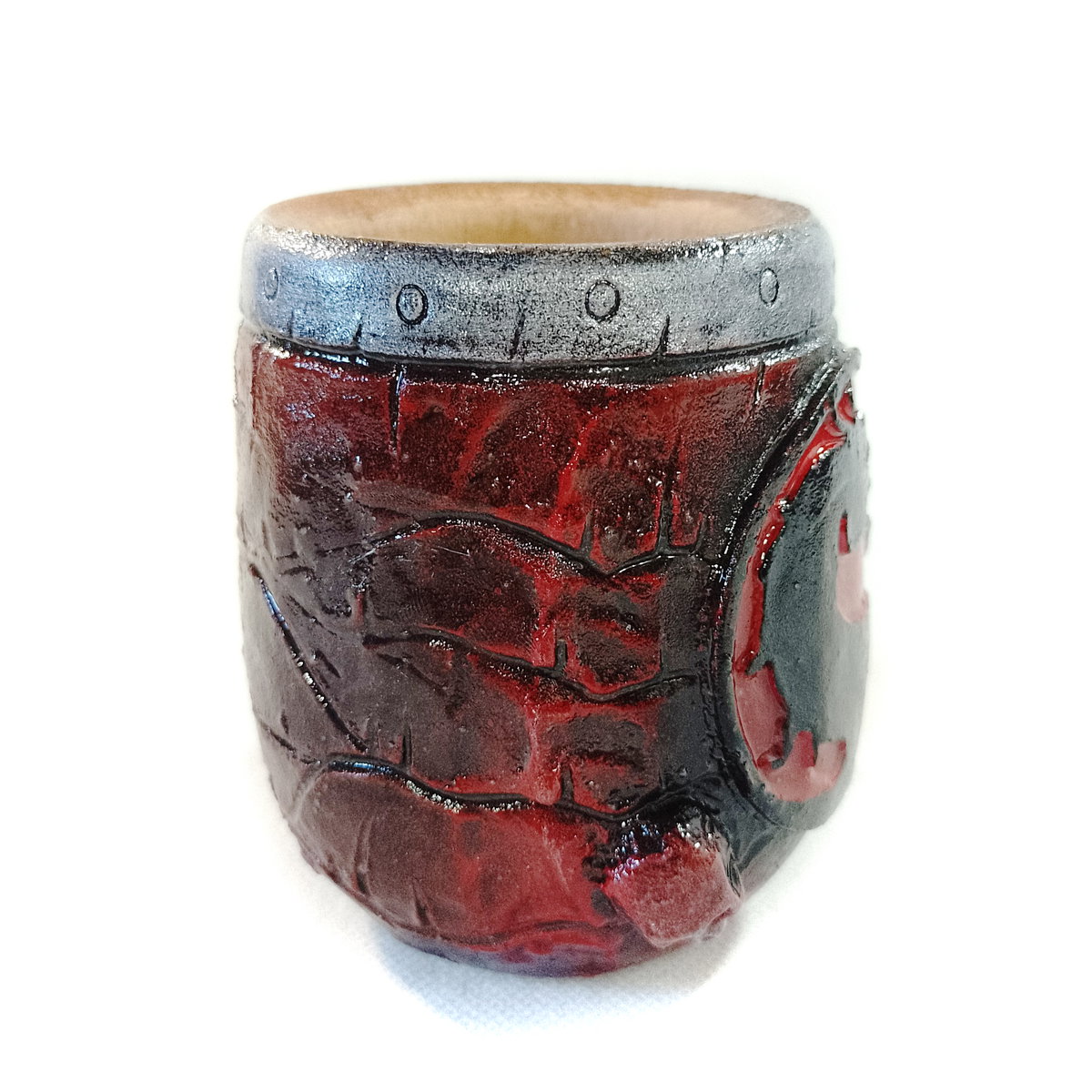 -Interior de algarrobo y exterior de porcelana fría, modelado y pintado a mano.