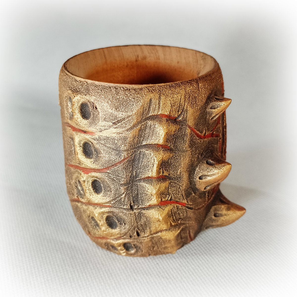 -Interior de algarrobo y exterior de porcelana fría, modelado y pintado a mano.